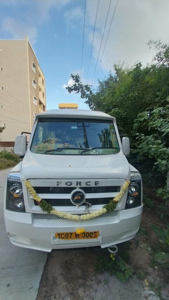 Force Urbania on Rent in Hyderabad is the ultimate choice for travelers who seek a premium, business-class experience combined with the convenience of group travel. Offered by Hema Hari Travels, the Force Urbania represents a new generation of luxury vans, perfectly suited for corporate clients, families, wedding groups, VIP movements, and long-distance travel. With seating capacities ranging from 10 to 17 passengers, Urbania offers unmatched comfort through spacious, reclining leather seats, individual AC vents, ambient LED lighting, and a high-roof design that provides extra headroom and a relaxed atmosphere. Whether you’re planning a high-profile guest pickup from Rajiv Gandhi International Airport, a corporate offsite in the outskirts, or a multi-day pilgrimage to destinations like Tirupati, Srisailam, or Shirdi, Force Urbania ensures a smooth, quiet, and comfortable journey for everyone onboard. Its modern features—including ABS, EBD, cruise control (in select models), noise-insulated interiors, and advanced suspension—make it a standout option for luxury travel in both city and highway conditions. Hema Hari Travels provides Urbania vans that are immaculately maintained, fully insured, and driven by experienced, uniformed chauffeurs who prioritize safety, punctuality, and customer service. We offer flexible rental options—hourly, daily, and multi-day packages—tailored to your itinerary, with transparent pricing and no hidden costs. Whether you’re transporting executives to an event, welcoming international guests, or taking your family on a comfortable vacation, booking a Force Urbania in Hyderabad through us guarantees elegance, efficiency, and ease throughout your journey.